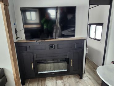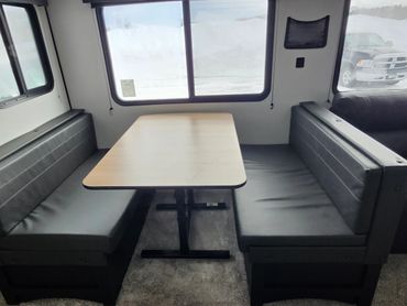 Master room has a Queen size bed that can be walked around. Trailer has 2 bathrooms, 1 - 3 piece bathroom with large shower and sink and the other bathroom has sink and toilet just off the bunkhouse which can sleep 4. Large outdoor kitchen with gas stove. All appliances are operational.