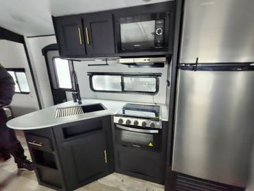 32 Foot Trailer, Outdoor Kitchen, Outdoor Shower, 2 Slide Outs, Auto Awing with LED lights, Central Vac with Front Storage, Trailer has one bedroom and a bunky, master room has a Queen bed, bunky sleeps 3